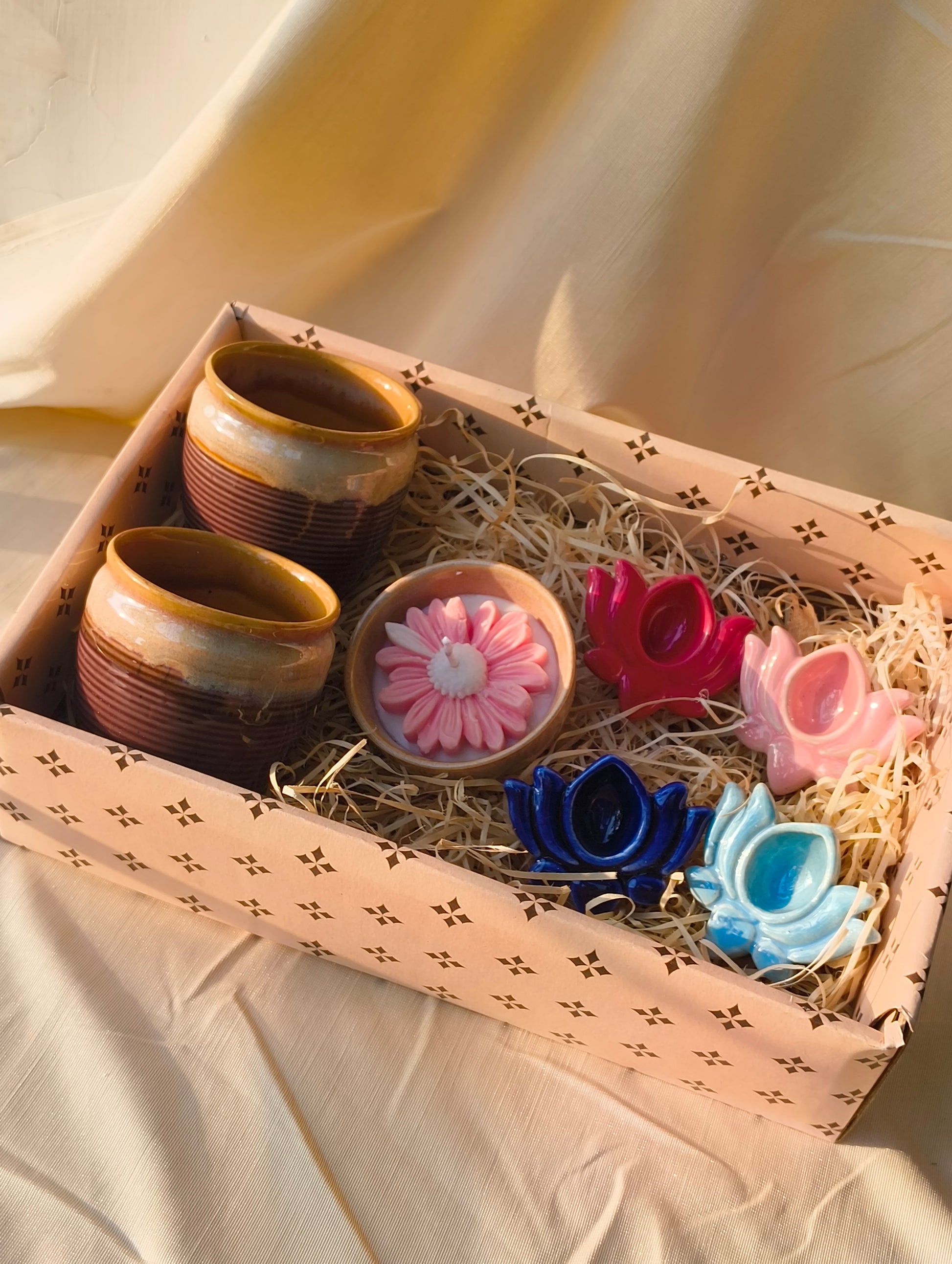Bring home the warmth of tradition with our Katthai Gift Box – a thoughtfully curated festive hamper that’s light on price but rich in quality. Featuring earthy kulhads, colorful diyas, and an aromatic candle, this box is the perfect choice for personal gifting, festive return gifts, or budget-friendly celebrations.