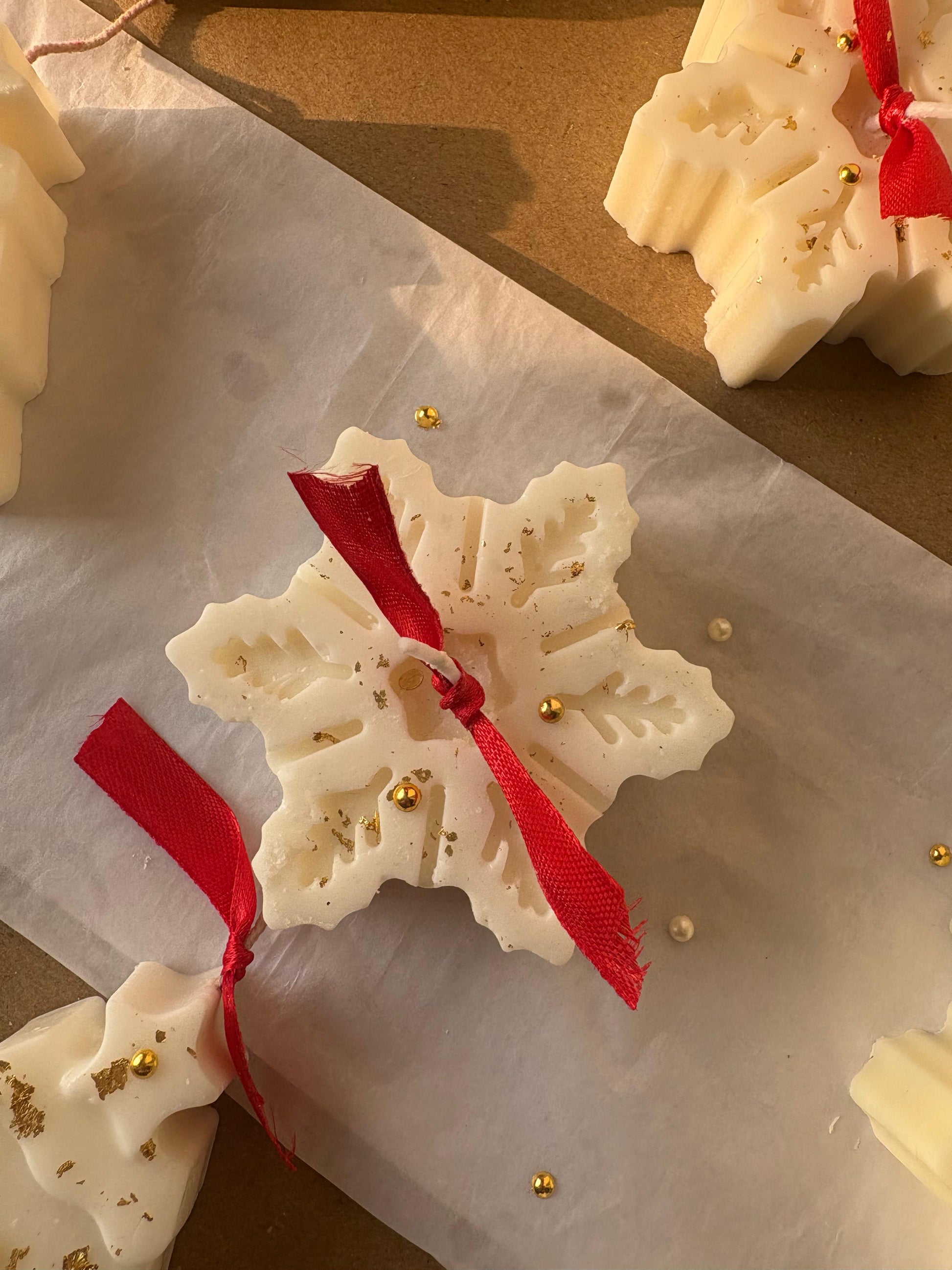 Elevate your winter ambiance with our Snowflake Soy Wax Candle, crafted from 100% pure soy wax and finished in elegant white with premium gold-foil accents. This aromatic, clean-burning candle adds a warm, luxurious glow to holiday décor, gift sets, and cozy spaces.